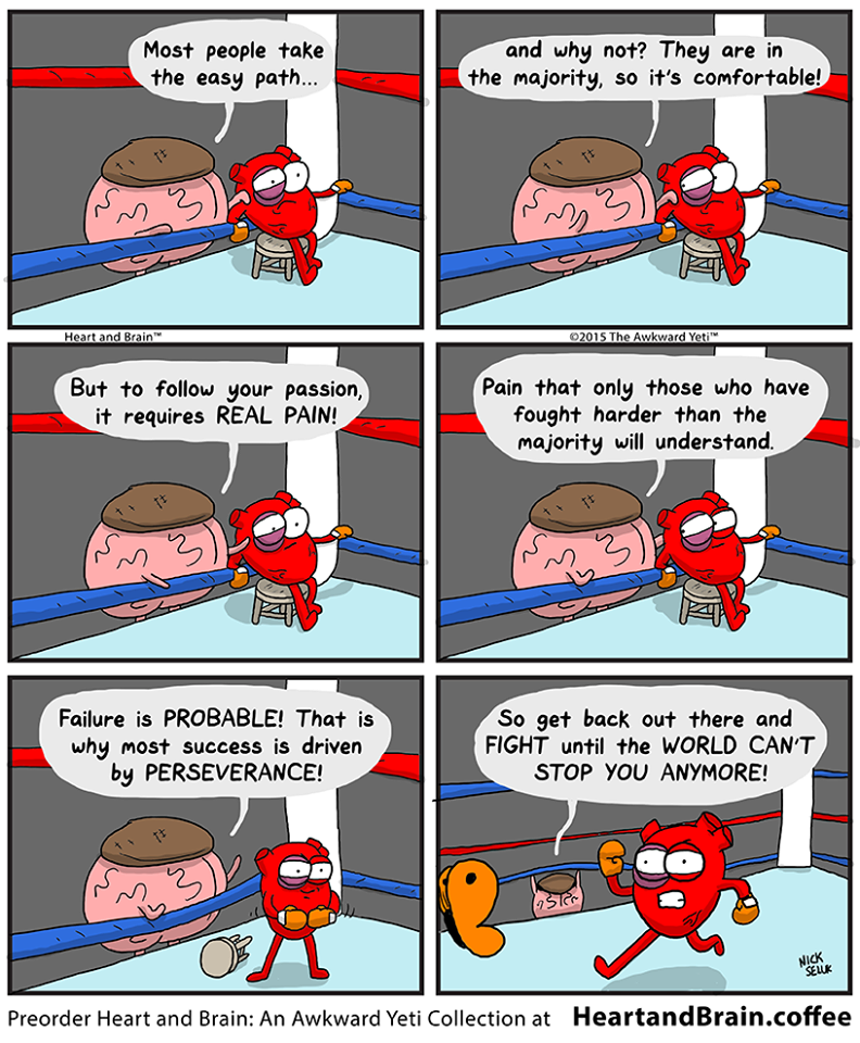 =) But back to my trip… Toward the end of this trip, the missionary we had been working closely with spoke to the team telling us what she felt G-d was saying to her about each individual on the team. I remember being slightly jealous when one was told they were a door or a key or some other multi-faceted, interesting item. When it came to be my turn, she says, “Ashley, I just see a big heart.” I can’t remember if she mentioned it being a bleeding one, but I do remember that it was just huge and full. And my heart is both of those things – huge and full. Always pulsing on about one mission or idea or another, never stopping to take a breath. But there are times when I have held this against myself. “After all, how can one be the fighter that one needs to be in the situations I CRAVE if I am this big (bleeding/bloody) heart? You will just get trampled. You will be crushed and then how will you get up again? How will you go on?” I challenge myself. And then I read this comic posted by one of my very favorite people, my Indelible: